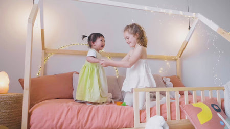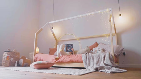 Graças ao seu design simples e poético, a cama cabana Celeste integra-se facilmente em todos os universos decorativos. Evolui com a criança e pode ser personalizada com grinaldas de luzes, cortinados ou almofadas para criar um ambiente único e acolhedor no quarto.