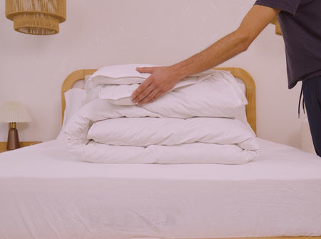 Confecionado com um acabamento com costura dupla e debrum de algodão, o edredão Grande Hotel alia robustez e elegância. Entregue num saco de lona prático e elegante, foi concebido para durar e conservar a sua forma ao longo do tempo. Uma escolha perfeita para uma cama natural e luxuosa, com qualidade Origine France Garantie.