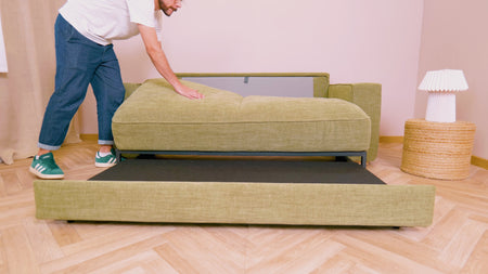 Com um design compacto de 2 a 3 lugares e assentos largos, este sofá integra-se facilmente em todo o tipo de interiores. Transforma-se rapidamente numa cama confortável, com firmeza baixa e apoio equilibrado, para proporcionar noites tranquilas.